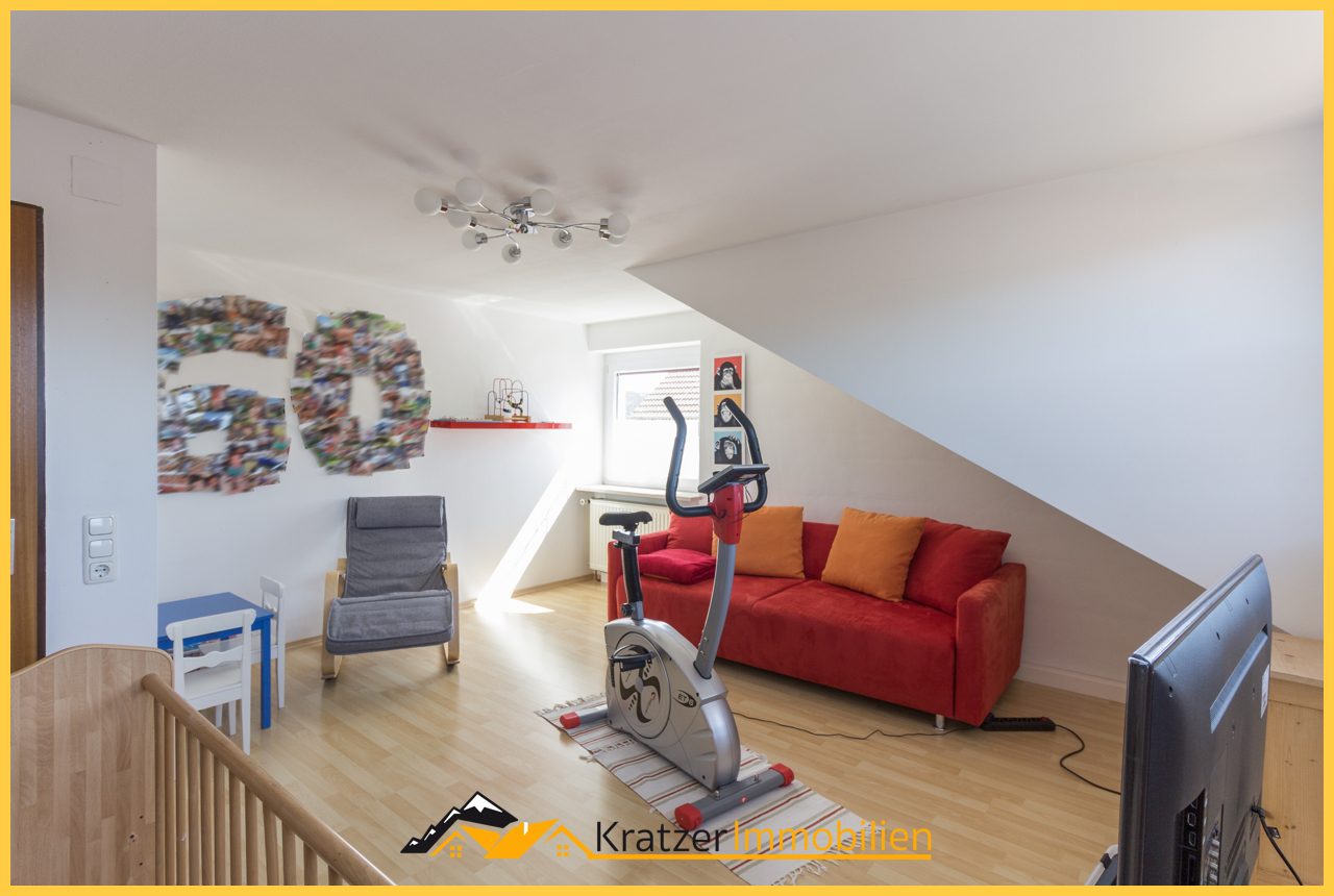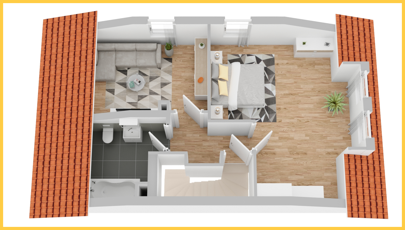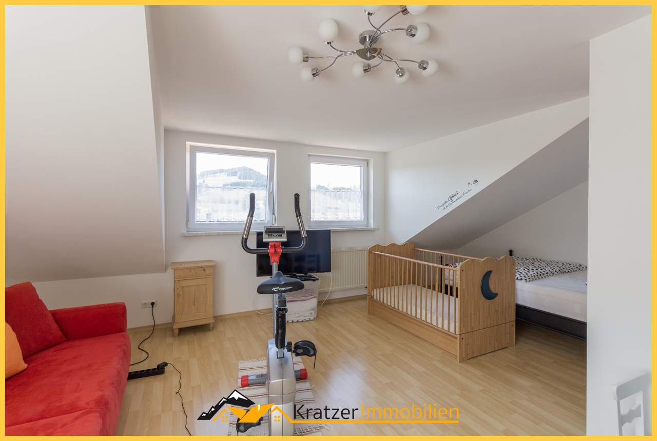 Das Dachgeschoss beeindruckt mit einem großen, hellen Raum, der durch die Dachgaupe viel Licht hereinlässt. Ein weiteres Zimmer sowie ein Badezimmer vervollständigen das Raumangebot auf dieser Ebene.