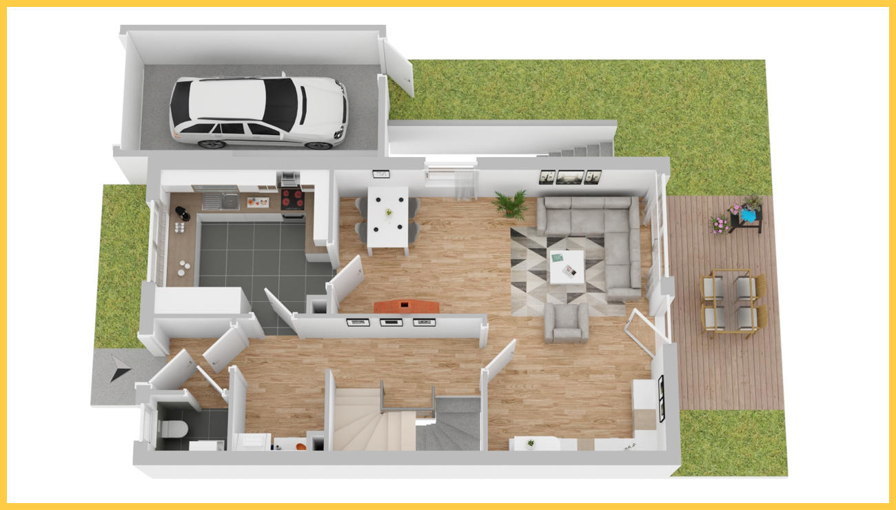 Es wurde auf einem 305 m² großen Grundstück erbaut und verfügt über eine Einzel-Garage mit direktem Zugang zum Garten. Weitere 2 Stellplätze sind direkt vor der Garage und dem Haus vorhanden.