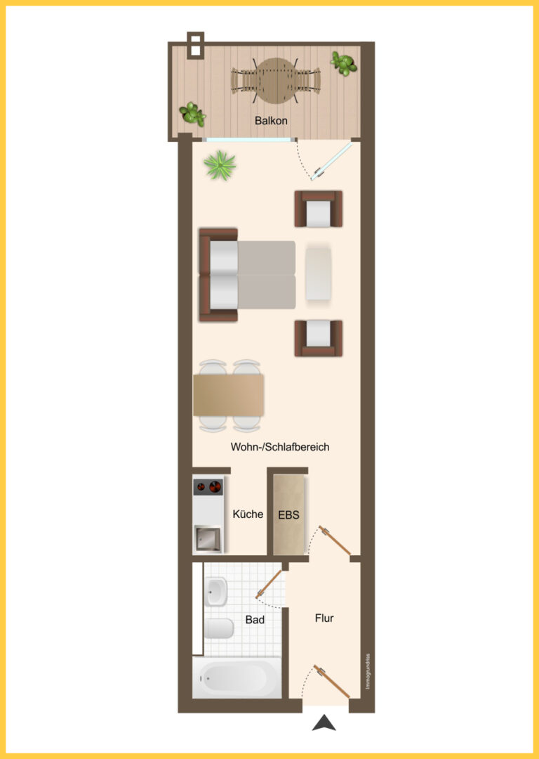 Das besondere Highlight an der Wohnung ist der großzügige Balkon, der nach Süden und Westen frei liegt und überdacht ist.