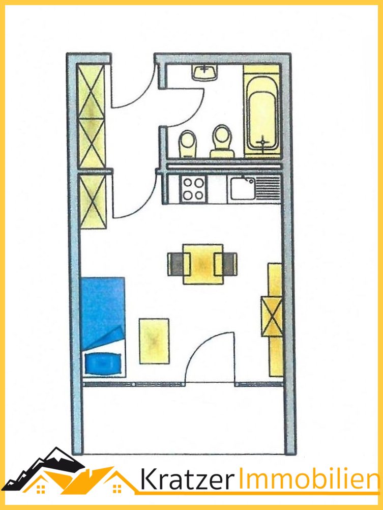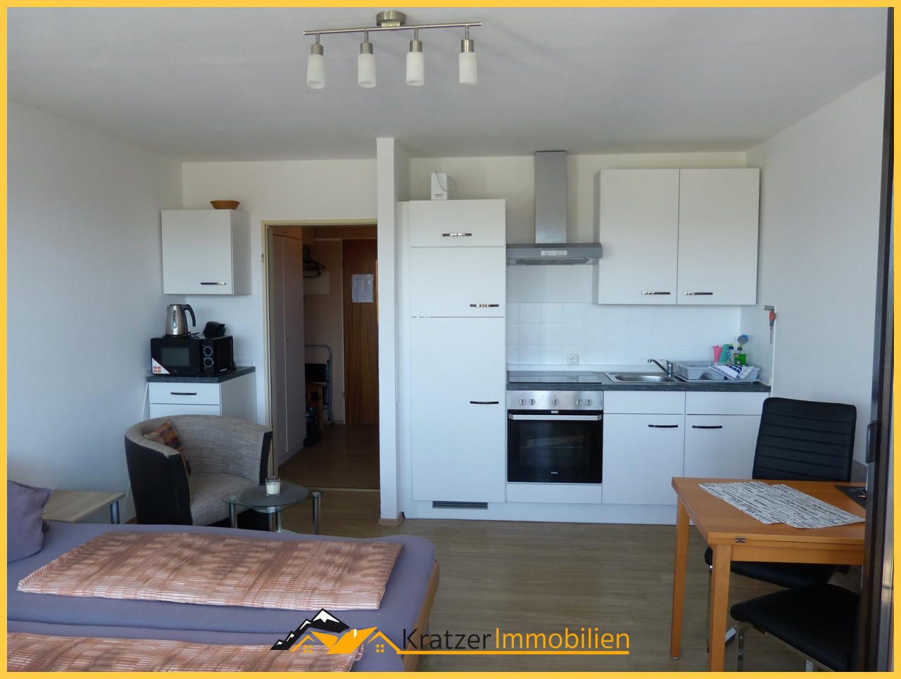 Die gut ausgestattete, komplett möblierte 1-Zi.-Wohnung befindet sich im 3. Obergeschoß einer größeren Wohnanlage in Waltenhofen-Rauns.